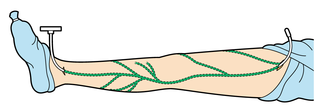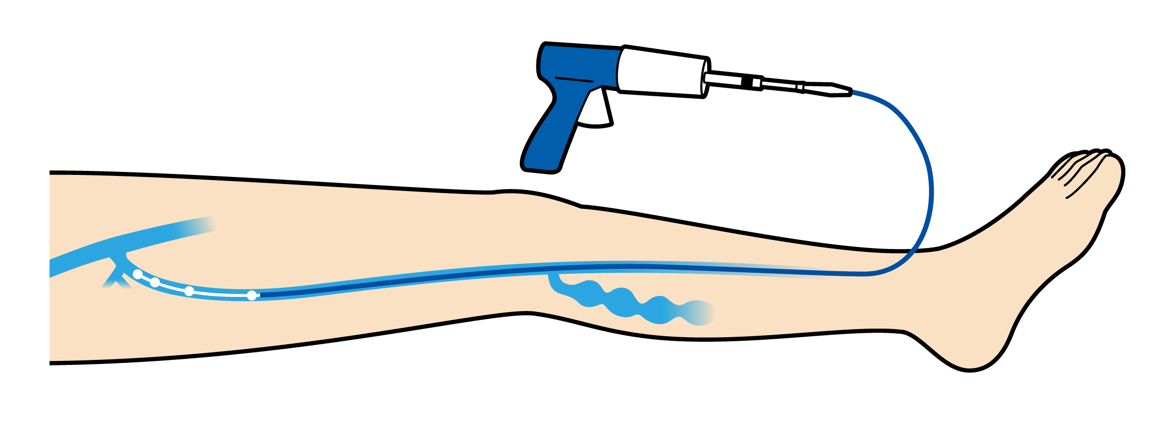 特殊な医療用の瞬間接着剤(シアノアクリレート系)を静脈瘤の原因血管内に注入し、物理的に血管を塞いで閉塞させます。