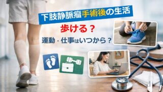 Q&A 【専門医監修】下肢静脈瘤手術後の生活|歩行・運動・仕事はいつから? 下肢静脈瘤手術後の生活について、歩いて帰れるか、運動や仕事はいつから可能かを専門医が解説。日帰り手術後の日常生活や注意点をわかりやすくまとめました。 2026.01.09 Q&A