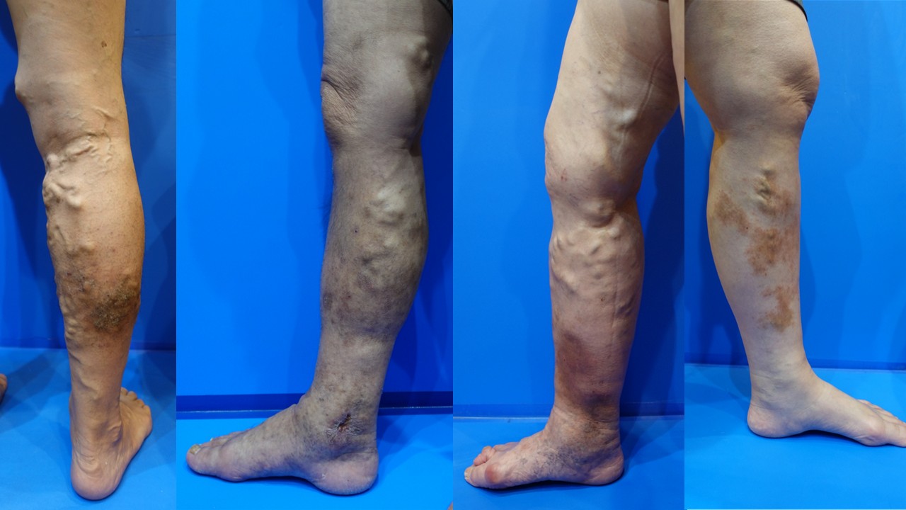 このような状態は、長年放置された進行型の下肢静脈瘤でよく見られる特徴です。