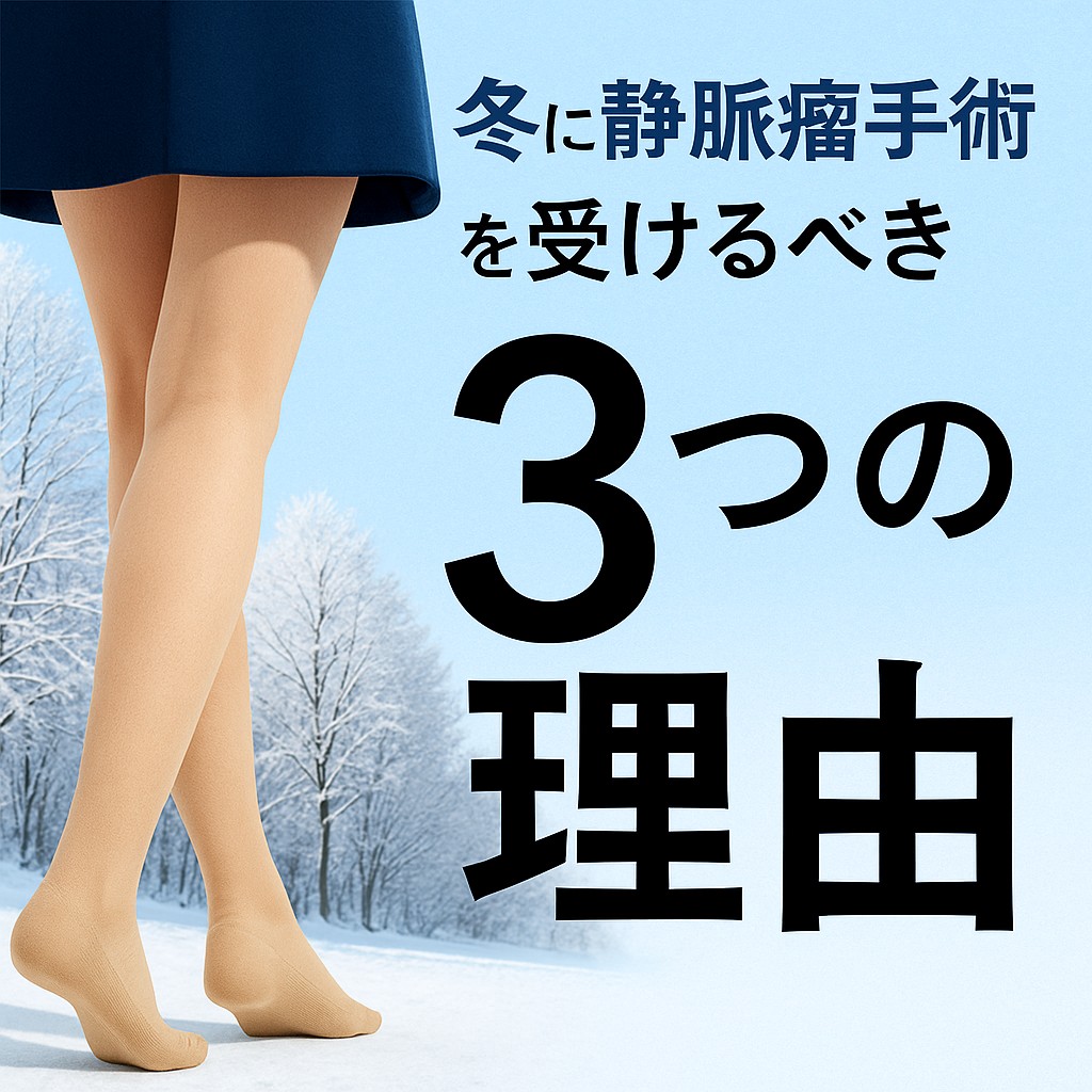 手術後には弾性ストッキングを一定期間履く必要があります。夏は暑さや蒸れでつらく感じる方が多いですが、冬は防寒にもなるため快適に着用できます。その結果、指示通りに続けやすく、治療後の経過も安定しやすいという利点があります。