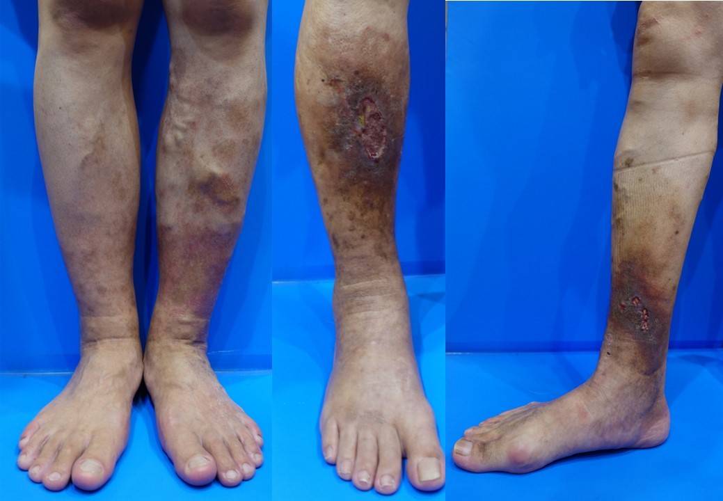 皮膚が茶色く硬くなるうっ滞性皮膚炎(色素沈着・皮膚脂肪硬化)が進むと、自然に消えることは少なく、放置で潰瘍のリスクが高まります。早めの受診で原因から対処しましょう。